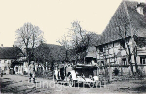 Blick in die Kirchstrasse - Rue de l'Eglise. Das Fachwerkhaus links ist heute nicht mehr vorhanden.