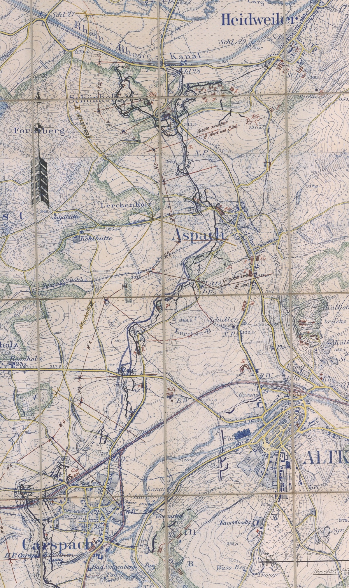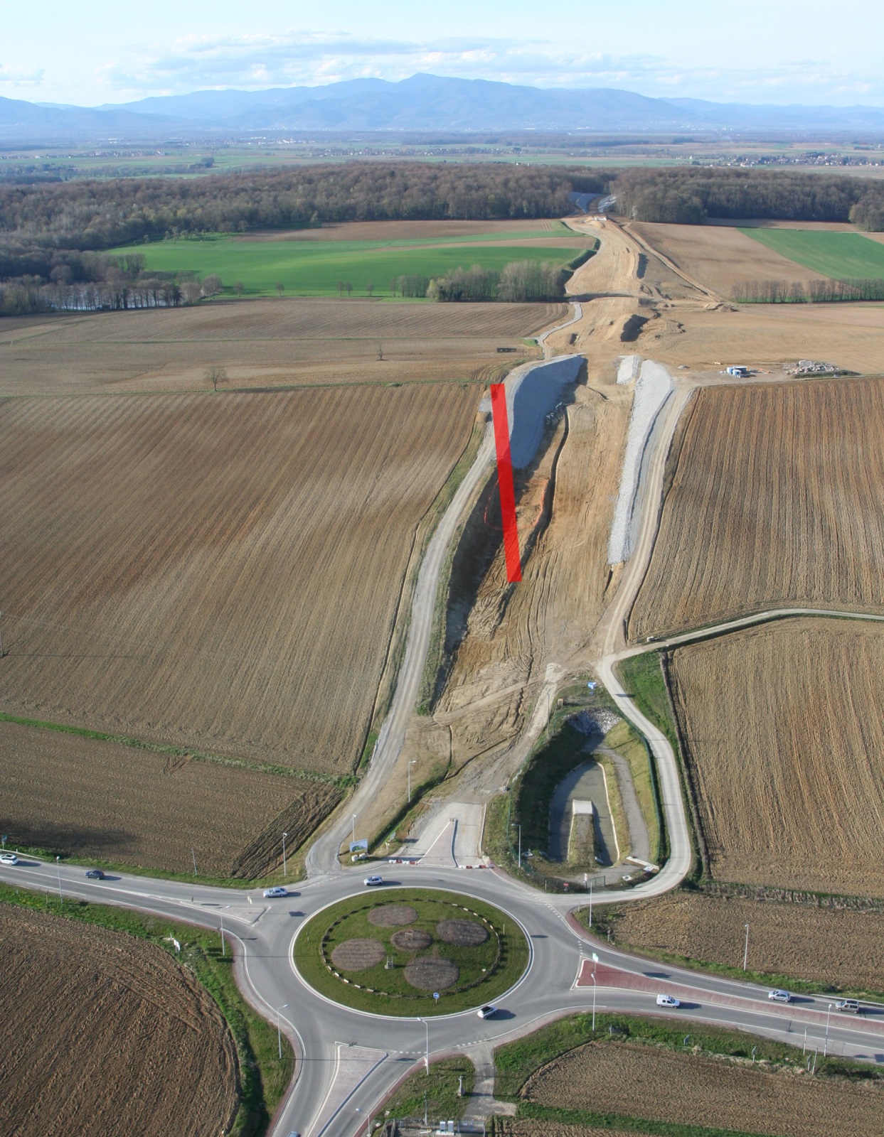 Der Kilianstollen und die darin begrabenen Soldaten waren nicht in Vergessenheit geraten. Ein Denkmal aus Stein erinnerte an die Toten. Als die Umgehungsstraße geplant wurde, welche über diesen Stollen führen sollte, wurde das Denkmal im Jahre 2007 auf den Militärfriedhof bei Illfurth versetzt und eine erst archäologische Prospektion7 durchgeführt. Mit Hilfe eines Baggers wurden auf einer Fläche von rund 14'000 qm 510 Sondageschnitte angelegt. Einige Überreste der deutschen Stellungen konnten dabei identifiziert werden. Die genaue Lage der Eingänge zum Kilianstollen blieb aber weiterhin unbekannt.