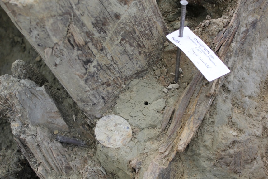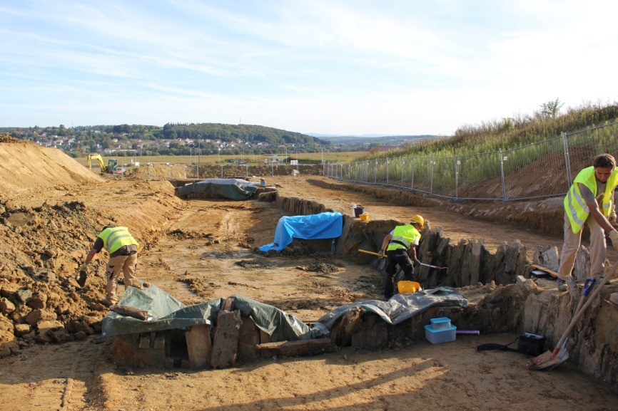 Bei den weiteren Bauarbeiten an der Umgehungsstraße stieß man schließlich auf die Stollenanlage. Der Stollen wurde vom 13. September bis 9. Dezember 2011 auf einer Länge von rund 100 Meter ausgegraben. Die Stollenanlage war im Laufe der Jahre auf weite Strecken mit Lös vollgelaufen. Somit war das Holz und alle Objekte luftdicht abgeschlossen und deshalb hervorragend konserviert.