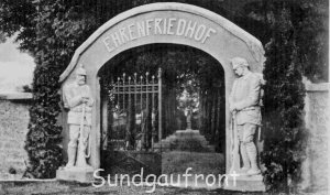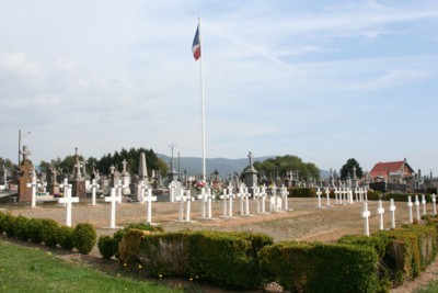 Im Rathaus von Ensisheim war während des Krieges ein Lazarett untergebracht in dem die Verwundetet der nahen Front behandelt wurden. Die im Lazarett Verstorbenen wurden auf dem "Ehrenfriedhof" vor der Stadt begraben. Der Friedhof war von einer hohen Mauer umgeben. Durch das Eingangsportal, welches von zwei Soldaten flankiert wurde, gelangte man durch eine Baumallee zu einem lebensgrossen Engel im hinteren Bereich des Friedhofs.