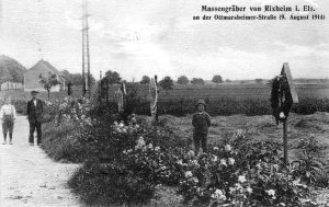 Massengräber an der Ottmarsheimer Strasse nach der 1. Schlacht bei Mülhausen vom 9./10. August 1914: