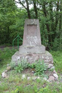 Gedenkstein beim ehemaligen Militärfriedhof. Die Inschrift wurde wohl mutwillig von Gesindel zerstört, vermutlich lautete sie: