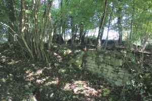 Reste der Umfassungsmauer und ein wuchtiges Kreuz auf einem Steinsockel sind heute noch vorhanden.