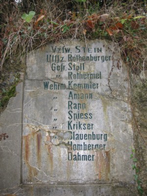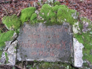 Hinweis: Da immer wieder Inschriften von Gesindel mutwillig beschädigt und zerstört werden, wird hier auf eine Standortangabe verzichtet. So wurde leider die Inschrift des L.J.B. Münster entwendet und dabei wohl auch zerstört (Frühjahr 2010).