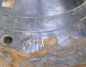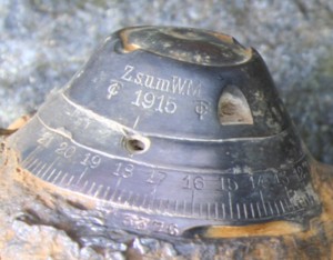 Hier der gleiche Zünder im abgesprengten und deformierten Kopfteil einer Granate (Hartmannsweilerkopf)