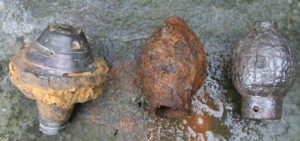 Laut Jürgen: "Funde aus dem Minentrichter Ammertsweiler (mit Erlaubnis des Eigentümers :-)) Zwei Handgranaten, ein Zünder einer Granate. Beschriftung auf dem Zünder: Z.s.u.W.M., 1915. Rechts und links der Jahreszahl zwei Zeichen. Die Einstell-Skala geht von 7 bis 21. Bild rechts: Auf dem unteren Ring ein Eisernes Kreuz."