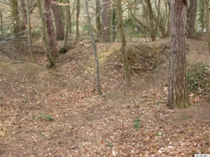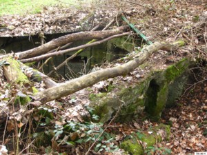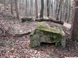 U 8: zwei unerklärliche Bauwerke vor den Stolleneingängen. Die Wände sind aus Fertigsteinen errichtet, die Decken betoniert und feindwärts geneigt. Die Längsseiten zeigen nach 320°.