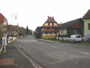 Balschwiller rue Principale: Un trou d'obus que les pluies ont rempli d'eau