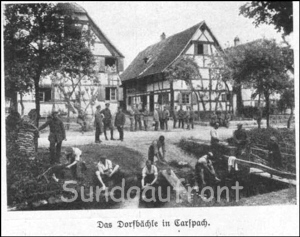 Text auf dem alten Bild: "Das Dorfbächle in Carspach".