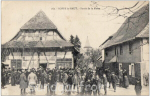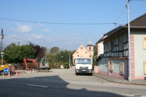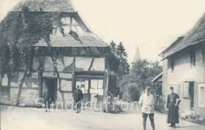 Blick in die Kirchstrasse - Rue de l'Eglise. Das Fachwerkhaus links ist heute nicht mehr vorhanden.