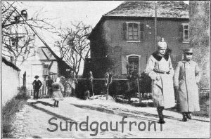 "Major Hansen und Divisionspfarrer Sinemus auf dem Kirchgange in Rantsweiler"