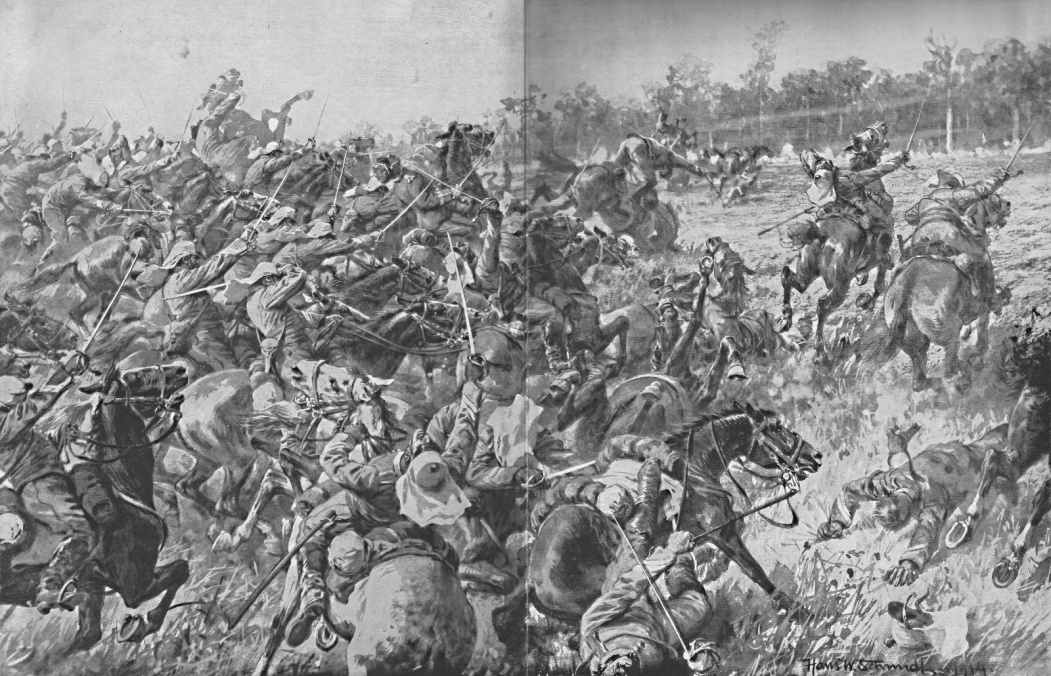 Kaum waren die Anordnungen getroffen, da dröhnte der Boden von den Pferdehufen, die Waffen der Reiter klirrten und ihr Schreien gellte. Aber die Schwadronen ritten nicht in derselben aufgeschlossenen Formation, wie die Deutschen eine Attacke reiten. Ihre Verbände begannen sich zu lösen und wurden getrennt, noch ehe sie auf 800 Meter an die deutsche Linie herangekommen waren. Aber immer noch wurde das deutsche Feuer nicht eröffnet. Ruhig lagen die Landwehrmänner hinter ihren Gewehren.