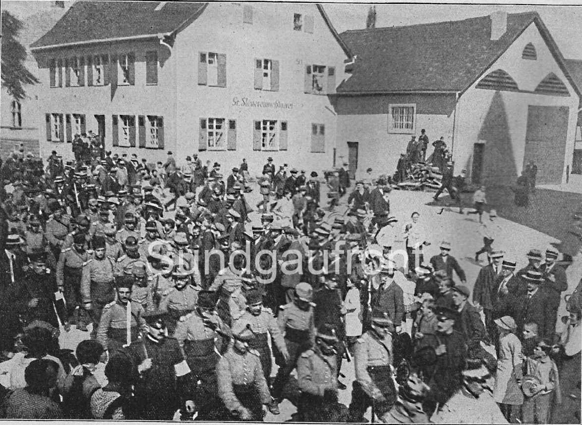 auf dem Abmarsch vom Bezirkskommando in Lörrach zum Bahnhof.