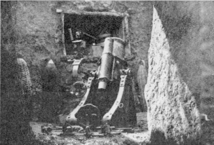Leichter Minenwerfer in Stellung im Schönholz bei Heidweiler