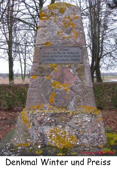 Der mit dem Auto herbeigeeilte Stabsoffizier teilt den Piloten mit, dass gerade heute zwei Kameraden ihrer Abteilung, Leutnant Winter und Vizefeldwebel Preiß, wahrscheinlich wegen desselben Materialfehlers über dem Hartmannsweilerkopf abgestürzt sind. Beide sind tot. Ihr Denkmal steht heute noch am Fuß des Hartmannsweilerkopf bei Berrwiller.