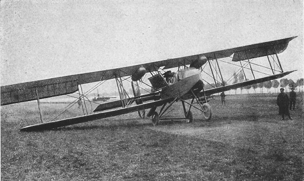 Zweite Gruppe: 10 riesige Breguets mit 260 PS-Motoren, jede bestückt mit 30 - 40 Bomben, Flughöhe 3000 - 3500m, darüber etwa 5 oder 6 Nieuports.