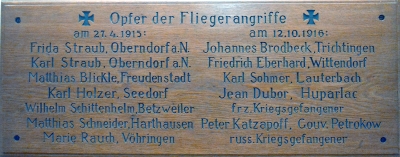 In der Aussegnungshalle auf dem Friedhof Oberndorf erinnert eine Ehrentafel an die Opfer der Luftangriffe (Foto: Florian Wein).