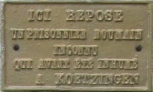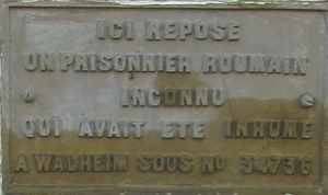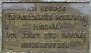 In Koetzingue erinnert eine Gedenktafel an 46 rumänische Kriegsgefangene mit dem Text: "....gestorben an Hunger und Kälte...."