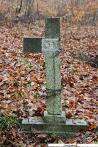 Ein einzelnes Grabkreuz auf dem Knochenberg bei St. Bernard (ehemals Enschingen - Brünighofen). Das Kreuz steht vor einer großen französischen Stollenanlage.