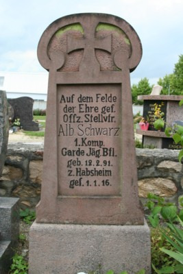 Im Rathaus von Ensisheim war während des Krieges ein Lazarett untergebracht in dem die Verwundetet der nahen Front behandelt wurden. Die im Lazarett Verstorbenen wurden auf dem "Ehrenfriedhof" vor der Stadt begraben. Der Friedhof war von einer hohen Mauer umgeben. Durch das Eingangsportal, welches von zwei Soldaten flankiert wurde, gelangte man durch eine Baumallee zu einem lebensgrossen Engel im hinteren Bereich des Friedhofs.