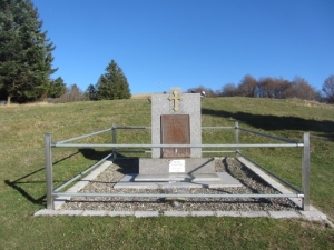 Gedenkstein beim ehemaligen Militärfriedhof. Die Inschrift wurde wohl mutwillig von Gesindel zerstört, vermutlich lautete sie: