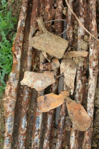 Überall im Kampfgebiet findet sich Wellblech. Große Stücke, oft gebogen, teils halbvergraben. Verzinkt, verrostet. Hier handelt es sich um sogenannte Hindenburgbleche, benannt nach dem Generalfeldmarschall Paul von Hindenburg, dem "Sieger von Tannenberg".