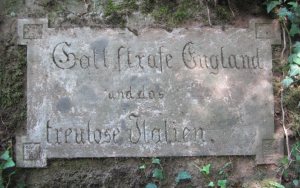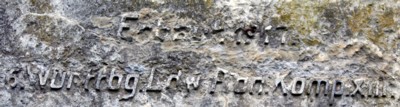 Hinweis: Da immer wieder Inschriften von Gesindel mutwillig beschädigt und zerstört werden, wird hier auf eine Standortangabe verzichtet. So wurde leider die Inschrift des L.J.B. Münster entwendet und dabei wohl auch zerstört (Frühjahr 2010).