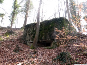Diese Skizze von 1916 der 4. Landwehr Pionier Kompagnie zeigt einen betonierten MG-Stand mit Stollenanlage. Die genaue Lage war zunächst unklar. Es ist nur vermerkt, dass die Anlage Teil der Illbergbefestigung war, und am Westrand gegen Carspach liegen soll.