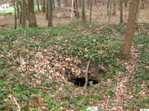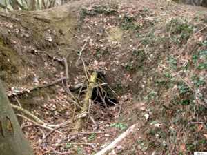 Bild links: Der MG-Stand oberhalb des Steinbruchs, Bild rechts: Stolleneingang unter dem MG-Stand