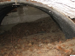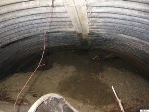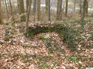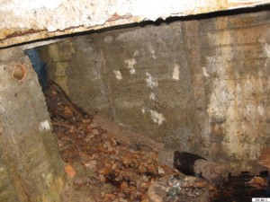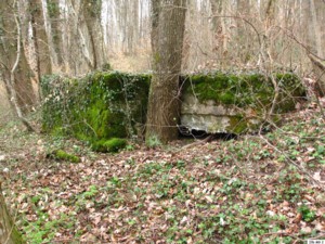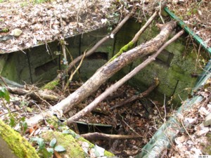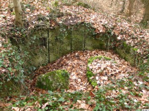 U 8: zwei unerklärliche Bauwerke vor den Stolleneingängen. Die Wände sind aus Fertigsteinen errichtet, die Decken betoniert und feindwärts geneigt. Die Längsseiten zeigen nach 320°.