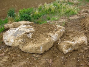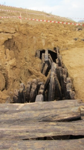 Im weiteren Verlauf der Straßenbauarbeiten musste die Trasse über den Lerchenberg planiert und eingeebnet werden. Dabei stieß man wohl eher zufällig auf Rahmenhölzer eines Stollens. Beim weiteren Freilegen der Fläche kam dann eine längere Stollenanlage zum Vorschein. Hier nun die ersten interessanten Bilder: