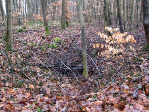 Im Gelände sind nur noch einige Mulden erkennbar. Der Brunnen ist nicht mehr auffindbar: