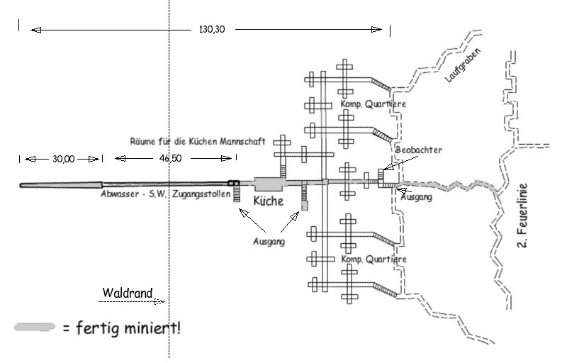 Stützpunkt und Stellungsküche bei der Littekapelle. Unterkunft für rund 200 Mann.