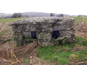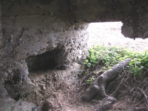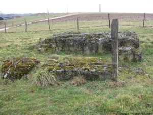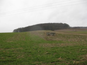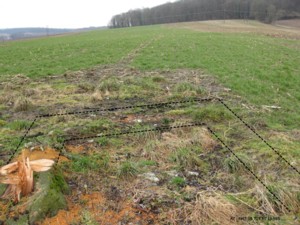 A6 liegt direkt am Feldweg. Betonreste sind unter dem Gestrüpp zu erkennen.