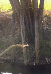 Die Ill wurde auf einer Holzbrücke überquert. Am Westufer der Ill stehen heute noch drei der eingerammten Pfähle!