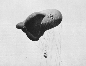 Foto des bei Bettendorf stationierten Fesselballons. Im Korb Leutnant Köstlin vom Ldw. Fuß-Artl. Batl. Nr. 13: