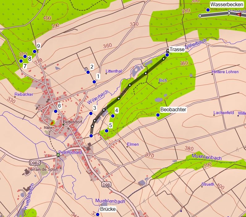 Die Trasse ist im Gelände zum Teil noch erkennbar und wurde von Einheimischen bestätigt.