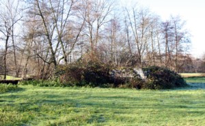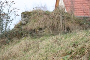 Direkt an der Larg gelegen, völlig mit Dornengestrüpp überwuchert.