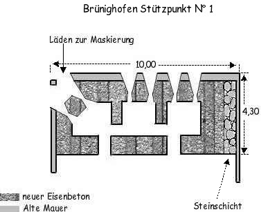 4. Es bleibt vorbehalten, entlang den feindwärtigen Aussenwänden eine kräftige aber unauffällige Steinlage aus grossen Steinen anzubringen als Krepierschicht.