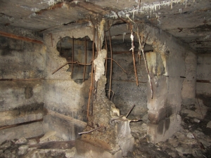 FB 1: Unterstand mit zwei Räumen. Der ersten Raum hatte ein Fenster, die Decke fehlt. Der hintere Raum war ein Wellblech-Unterstand. Das Wellblech ist inzwischen nicht mehr vorhanden.