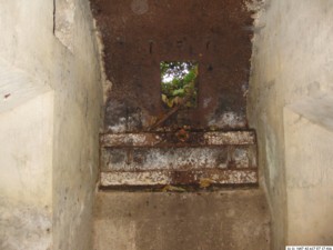 Ein kleiner Raum, Schießscharte zum Eingang, Treppe mit drei Stufen führt unter die Kuppel, beidseitig Munitionsnischen.Kuppel aus ca. 30 mm starkem Metall. Schussrichtung gegen Zillisheim.