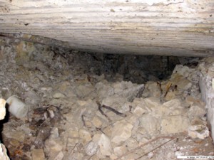 Bei (11) findet man noch zerschossenes Wellblech und Betonreste.
