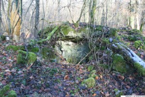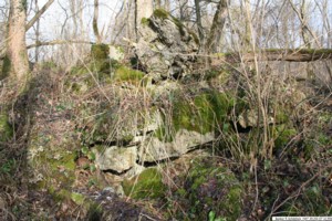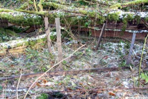 Punkt (18): Betonreste eines Unterstandes, in der Nähe ein Stück Schiene einer Feldbahn.