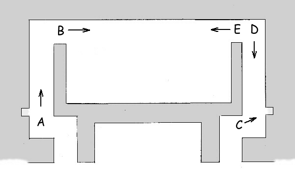 Die Buchstaben in der Skizze markieren den jeweiligen Aufnahmeort der Fotos.