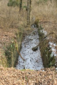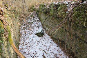 Punkt 2: betonierte Rinne, 110 Meter lang, 50 cm tief, Funktion unklar