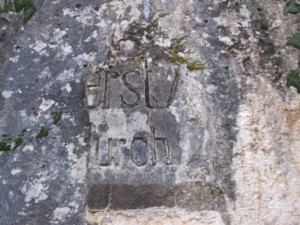 Rechts neben dem mächtigen Betonunterstand mit 3 Räumen und 3 Eingängen ist auch heute noch die betonierte Plattform für die beiden schweren Feldhaubitzen zu erkennen. Die Anlage befindet sich in "Hinterhangstellung", die Ziele "Lerchenholz" und "Schönholz" liegen nur 3 km entfernt im Westen. Auch die französischen Artilleriestellungen am Dockenberg konnten damit erreicht werden. Die Inschrift ist leider stark beschädigt.