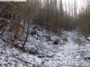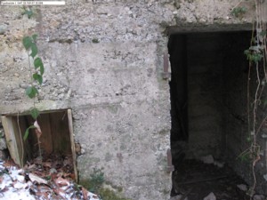 Das erste der beiden Munitionslager mit zwei Räumen (N47 39.765 E7 15.098) im Tannhölzle . Das Originalholz in der Nische ist noch erhalten.