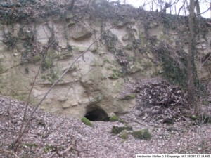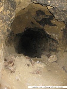 Stollenanlage (N47 39.397 E7 14.485) mit drei Eingängen, durch den mittleren Stollen begehbar: