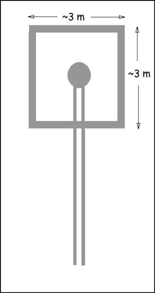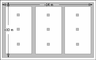 3 baugleiche Fundamente mit jeweils 3 Räumen für die Lagerbaracken.