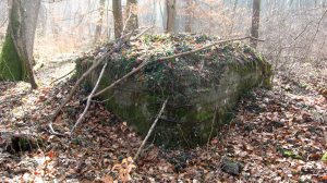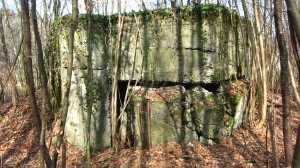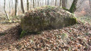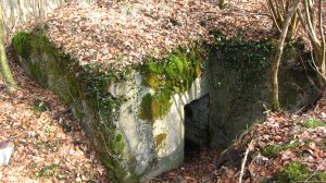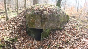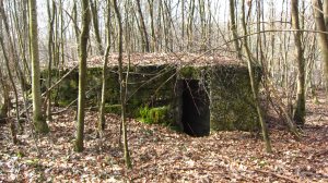 H 55: Betonklotz, hat außer dem Eingang keine Öffnung. An der Seite Metallschienen. Deckenstärke 160 cm.